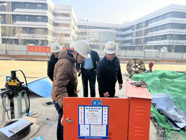 包河區(qū)質(zhì)安站正在檢查人員在崗、一會三安和防觸電、防物打、防高墜落實情況。